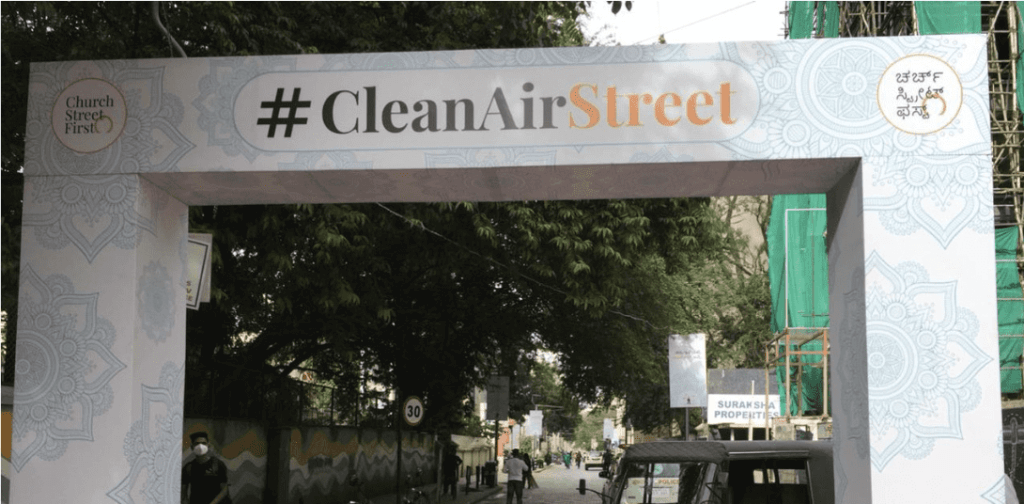 The Clean Air Testbeds involved a cohort of 17 UK and Indian SMEs, with 9 selected to deploy solutions on the Clean Air Street – Church Street, one of the busiest streets in the Central Business District of Bengaluru– which was closed tp internal combustion engine vehicles and reprioritised clean mobility on weekends to enable this.